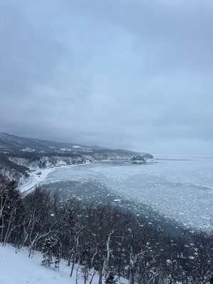 流氷が接岸、五湖のコースの最終地点からも綺麗に見えますよ。